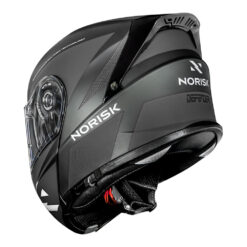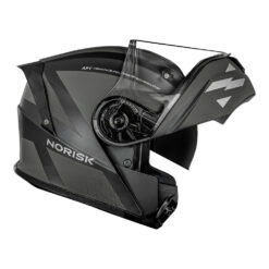 O NORISK FORCE II é feito para quem passa muito tempo com a moto e precisa de um capacete equilibrado, ou seja, com distribuição de peso ideal. A viseira desse capacete conta com 5 estágios de abertura, e possui troca rápida de viseira. Com excelente campo de visão e viseira de policarbonato com 2,2 mm resistente a riscos e marcas, também oferece óculos interno escuro com proteção UV. Facilmente acionado na lateral inferior esquerda do capacete. Com uma forração EXTRA CONFORT, o NORISK FORCE II tem sua forração removível e lavável, com seu tecido sendo antialérgico. A cinta jugular reforçada tem bom espaço de ajuste e está ligada ao sistema micrométrico para travar o capacete.