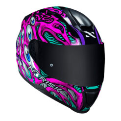 • Suas linhas aerodinâmicas foram inspiradas nos capacetes de alto desempenho e traz forma oval que diminui o arrasto e potencializa a circulação de ar, canalizadas pelas grandes entradas frontal e superior. Diretamente ligadas ao EPS de multidensidade, o ar que entra circula por canaletas até a saída traseira, tornando a pilotagem do motociclista mais confortável;