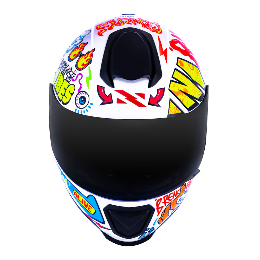 • Suas linhas aerodinâmicas foram inspiradas nos capacetes de alto desempenho e traz forma oval que diminui o arrasto e potencializa a circulação de ar, canalizadas pelas grandes entradas frontal e superior. Diretamente ligadas ao EPS de multidensidade, o ar que entra circula por canaletas até a saída traseira, tornando a pilotagem do motociclista mais confortável;