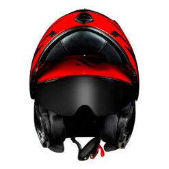 Para começar, ele possui uma viseira de 2,2 milímetros, em policarbonato, opticamente correta e plana, resistente a riscos e com proteção UV. O óculos interno agora conta com sistema de acionamento suave pela lateral, que contribui para a praticidade e conforto do casco. As vantagens deste capacete modular ficam ainda mais evidentes quando falamos do sistema de ventilação multicanais, estrategicamente integrado ao EPS, com uma eficiente entrada de ar frontal inferior, ampla abertura de ar superior, quatro saídas de ar inferiores e spoiler traseiro, que além de melhorar a aerodinâmica e o design do casco, possui inserções refletivas que ajudam em condições de pouca visibilidade.