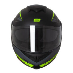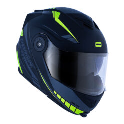 Para começar, ele possui uma viseira de 2,2 milímetros, em policarbonato, opticamente correta e plana, resistente a riscos e com proteção UV. O óculos interno agora conta com sistema de acionamento suave pela lateral, que contribui para a praticidade e conforto do casco. As vantagens deste capacete modular ficam ainda mais evidentes quando falamos do sistema de ventilação multicanais, estrategicamente integrado ao EPS, com uma eficiente entrada de ar frontal inferior, ampla abertura de ar superior, quatro saídas de ar inferiores e spoiler traseiro, que além de melhorar a aerodinâmica e o design do casco, possui inserções refletivas que ajudam em condições de pouca visibilidade.